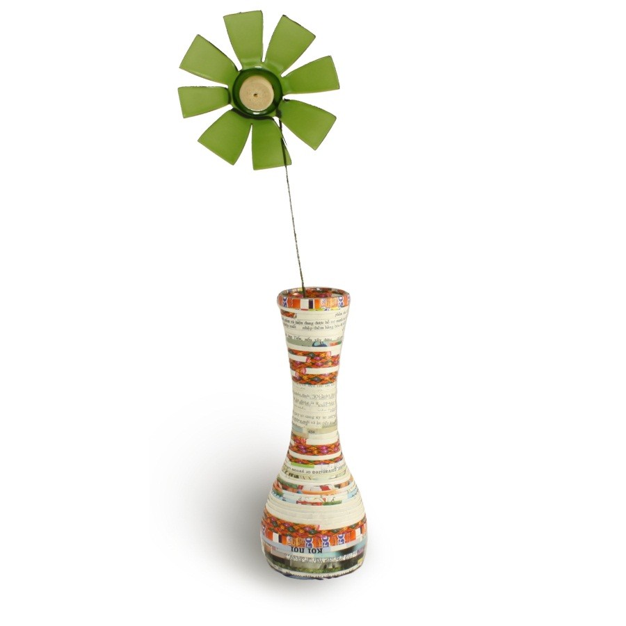 Prettify any room with this lovely bud vase wrapped in upcycled paper. Every one of these is like a surprise in a box! You never know what color combination you may get, as the paper that is used varies from day to day. Arrange fresh flowers in this vase for a unique still life in any room. Have a breath of spring in your home regardless of the season with one of these vases filled with any color flower arrangement!