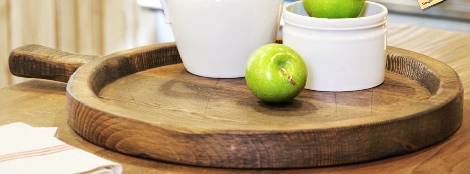 Made entirely of wood originally felled and put to use in the 1800's, this olive tray travels to you all the way from Europe. Raised edges ensure that your favorite cheeses and fruits stay on the tray, and provide a handsome backdrop to make anything look even more appetizing. Finished with non-toxic, organic oils, these serving trays whisper at your secret, mysterious double life as a European heiress.