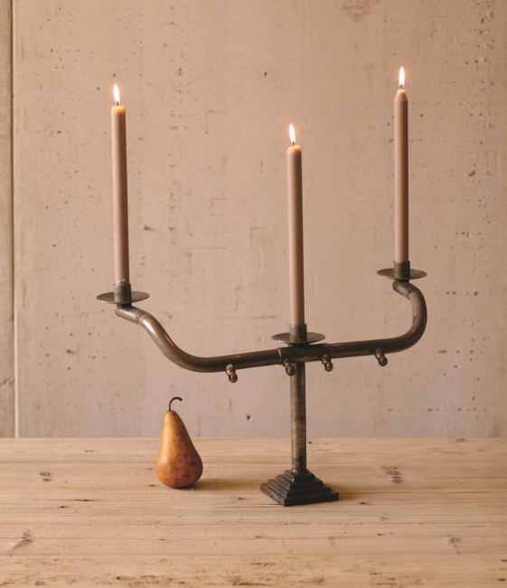 A total conversation piece, the wear on these candelabras vary greatly. Some look like bike parts fresh out of the box, and some, if they could talk, would have great stories to tell.
