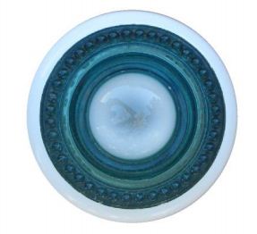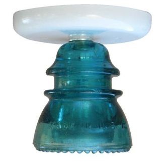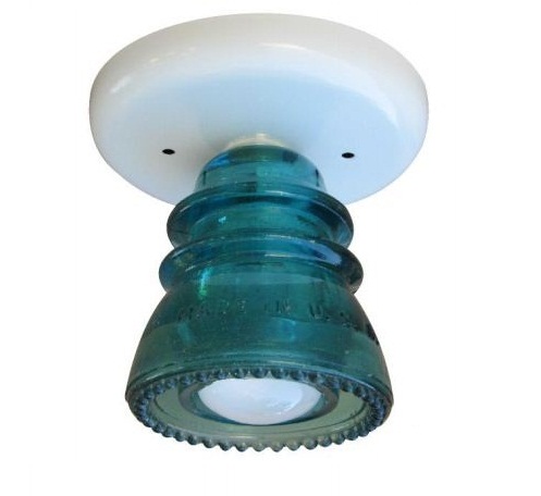 Now considered collectible items, they are again found useful in this ceiling mounted light. Made from your choice of either a blue or clear insulator, this part has been carefully cleaned, polished, drilled, and installed as part of this interesting light fixture.