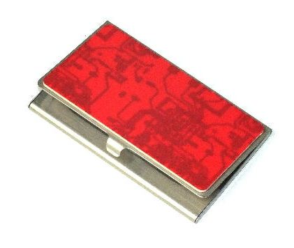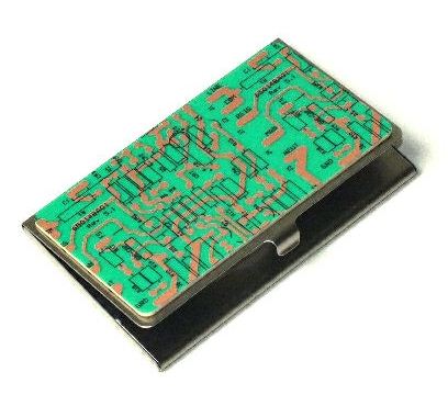 Keep your cards crisp and safe with this business card holder. This shiny holder makes e-waste look stylish with your choice of motherboard color, and securely snaps shut. Holds 10-15 business cards.