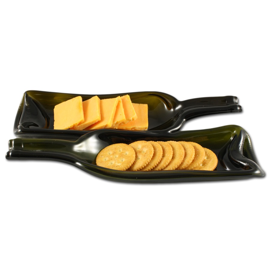 We all know wine and cheese go well together. So why not serve your cheese on an upcycled wine bottle? This glass platter is made from two wine bottles that have been fused together as handy new serving dishes! Upcycling at it's core- taking something bound for the trash and making it beautiful and useful.