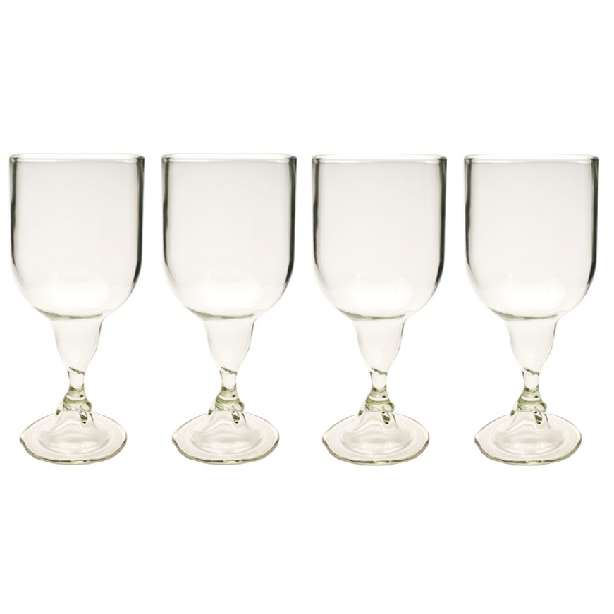 Each of these glass goblets is made from the upper portion of a reclaimed wine bottle via a patented wine-bottle-to-goblet conversion process. This stemware is simply beautiful, allowing for this recycled glass alternative to look at home at even the fanciest of dinner parties. Whether it is used as a wine glass or a water goblet, this set of items is just what is needed to round out the glassware collection of any home.