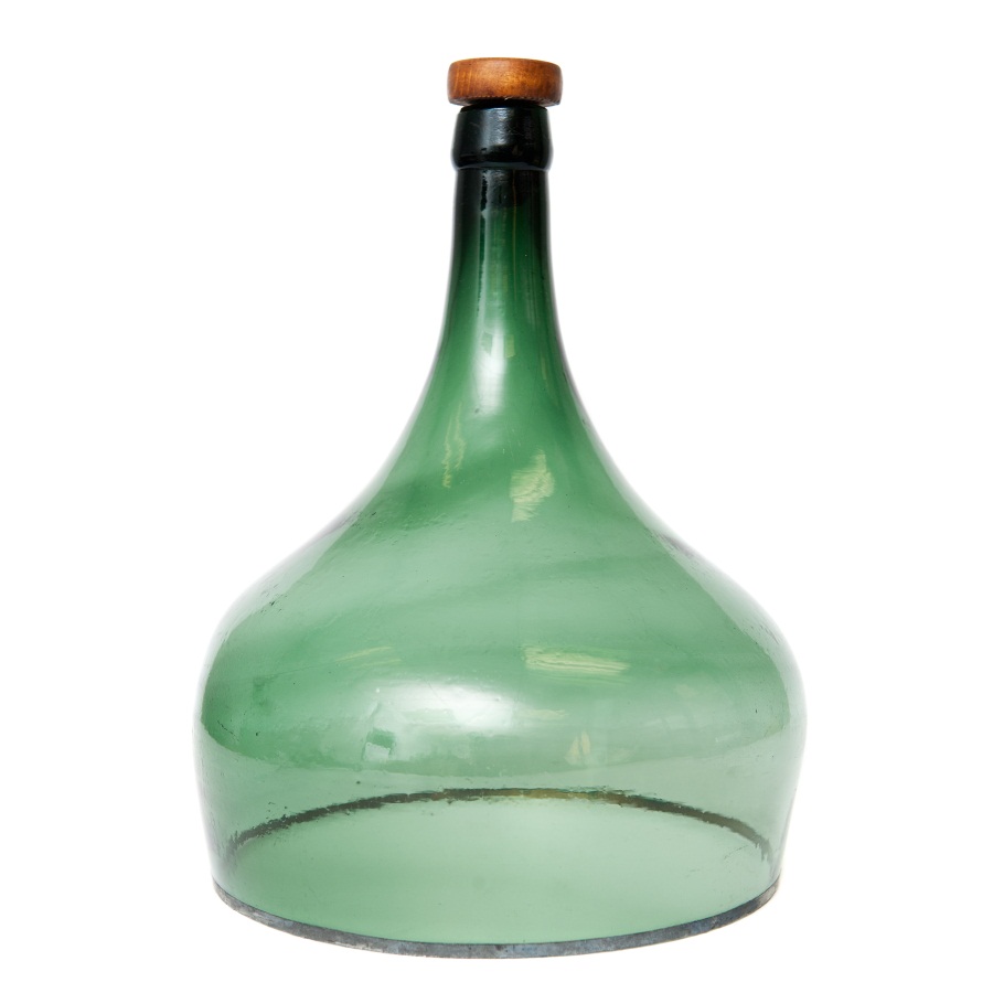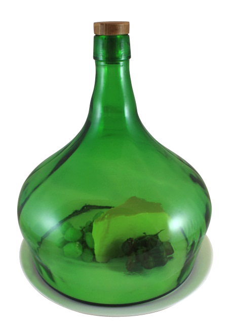 These stunning cloches are made from a vintage 1920s bottle from Central Europe. What a dramatic and unique item! Each one comes accented with a beautiful tin edge and includes a wooden stopper. While they are great for keeping your cheese and other snacks covered, we've also seen them used as a terrarium. Platter in pictures not included. Sizes vary. For the demijon (small) size, the clear ones tend to be smaller at about 13" high and 10" diameter. The green ones are about 14" high and 11" diameter. For the balon (large) size, the run about 16-17 inches high, and 13-14 inches in diameter.