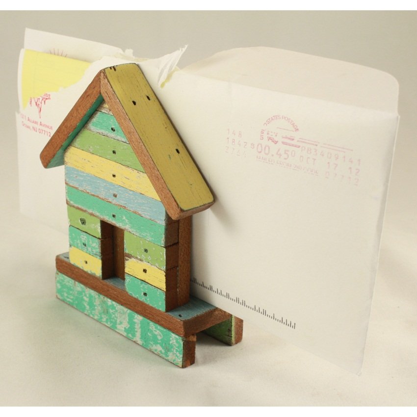 The wood used in this upcycled letter holder is salvaged from old boats, schools, homes, and other buildings, refinished, and built into this tiny house. Purchasing this does all sorts of good in the world!