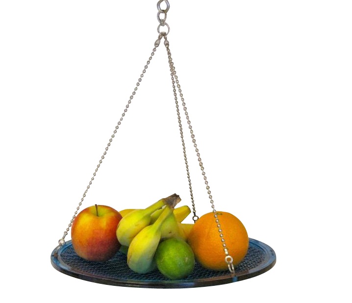 Hung from beaded bridal wire chains, this product definitely won't be found in your friend's kitchens! Pile it high with fresh fruit- we all are much more likely to make healthy food choices if we are able to see them. Alternately, use it as extra storage space for spices, kitchen scrubbers, or whatever else you can think of!