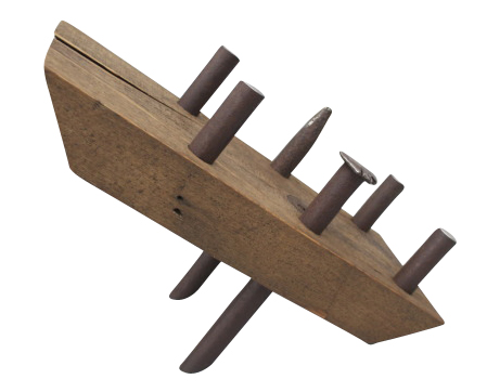 Construction pins are just one of the items that may be discarded from these projects. Combined with a sturdy chunk of wood reclaimed from a remodeling project of an 1800's home, a fascinating wine rack is born. Sure to pique your guests' curiosity, this is a sure conversation piece.