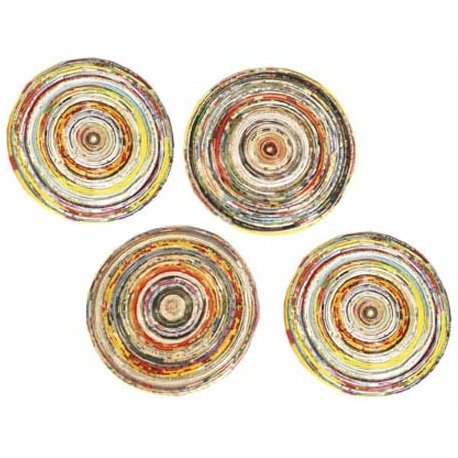 You'll go dizzy with delight with this set of four colorful coasters! Upcycled from reclaimed paper that has been meticulously wrapped into circles, these coasters have been sealed to resist water. Each one is a unique work of art. including all sorts of vibrant colors to ensure they'll match any room.