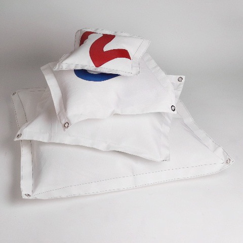 One of the easiest ways to bring a homey feel to an outdoor "room" is the addition of deck pillows. While most must be taken indoors at the sign of the slightest hint of rain, you won't have to worry about these throw pillows! Made from upcycled pre-consumer sailcloth with grommets in each corner, the material is designed to withstand the rigors of the outdoors (though we recommend storing them when not in use to make them last even longer).