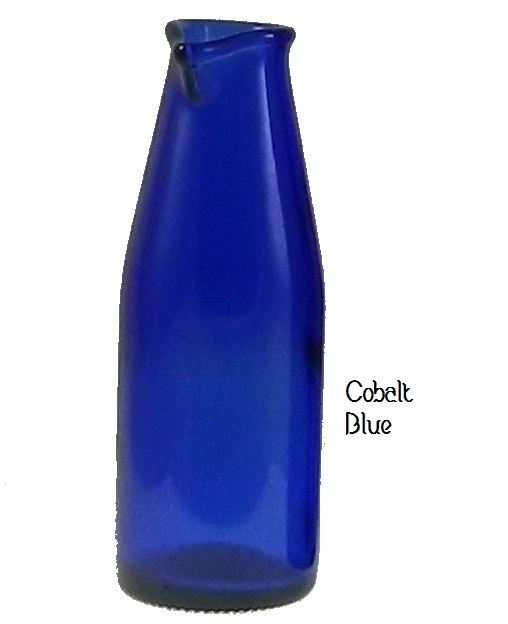This recycled glass pitcher is a must for any kitchen. Use it as an everyday water pitcher, glass decanter, glass carafe, or add it to a display of cocktail glassware. Each pitcher is unique and sizes may vary slightly based on the availability of the upcycled glass. These pitchers are run through a kiln, and the rim is carefully polished with a torch to ensure a smooth, sleek finish.