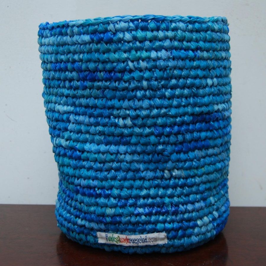- FunkyJunk Recycled products are easy to store. They can be pressed flat and simply bent back into shape again.