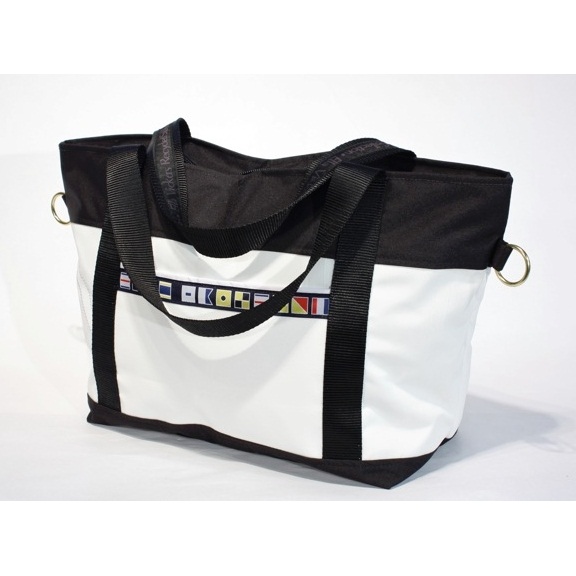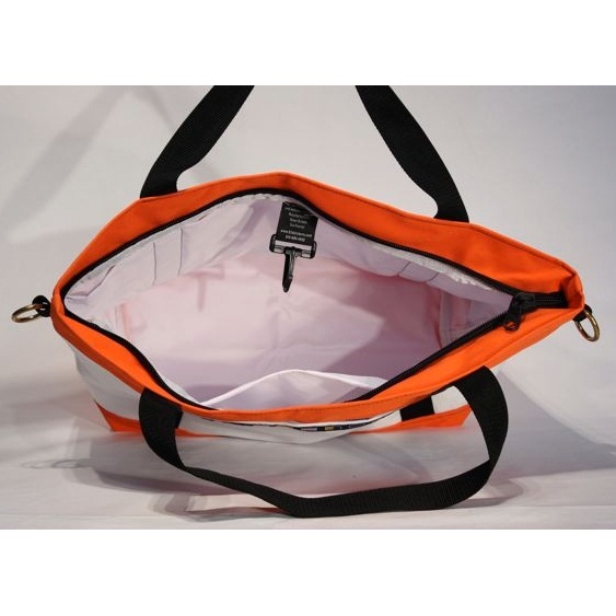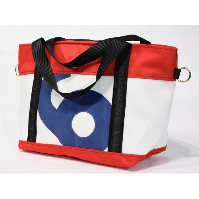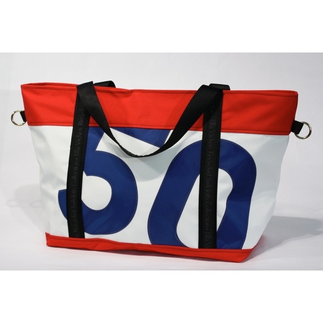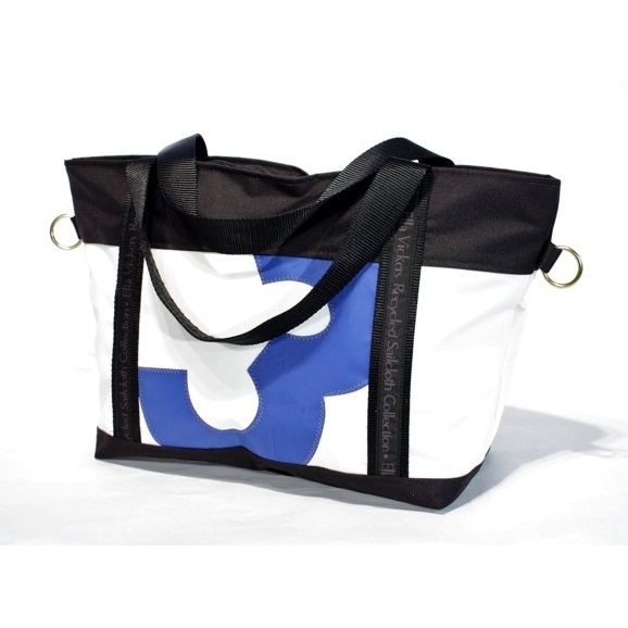 Just as there are literally tons of fabric tossed into landfills from clothing, the same may be said when sails are made. So why not use it to your advantage? This tote bag just may become a family heirloom- it will last and last! Upcycled from pre-consumer sailcloth and black recycled webbing, even the zipper has been tested to ensure that this is the best bag to bring on any sea voyages- or to your local farmer's market!